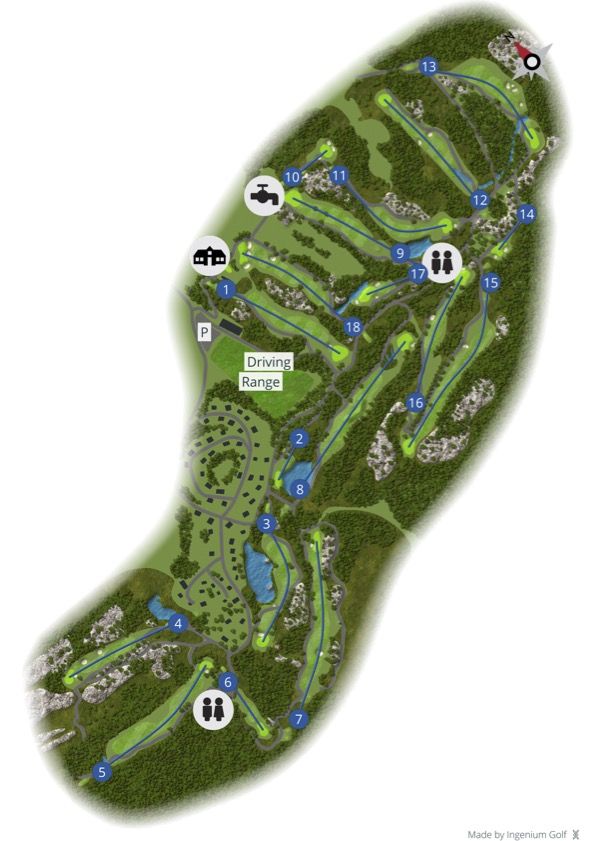 Banen er en skogsbane med par 70. Fairwayer og greener av ypperste kvalitet.
