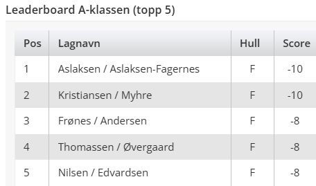 Resten av resultatlisten finner du her: Turneringsprogram - Kragerø golfklubb